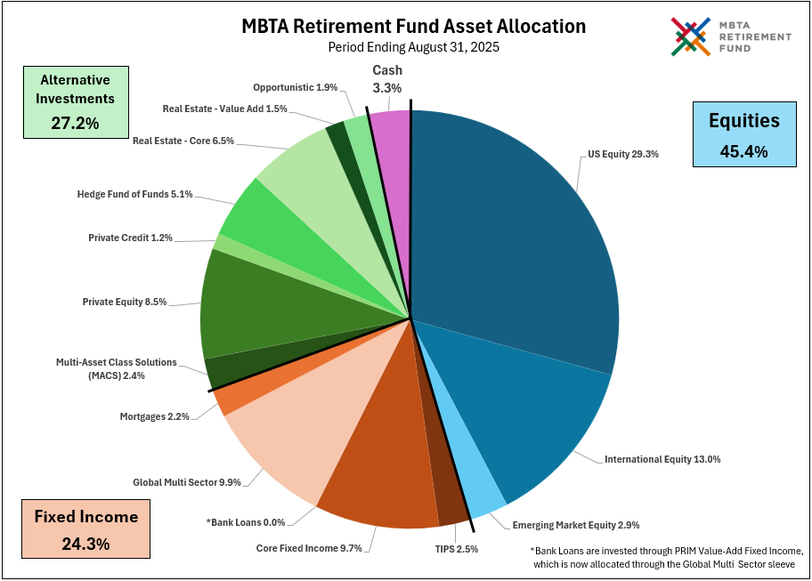 Factors the MBTA Retirement Board considers in establishing the Fund’s asset allocation strategy include the Fund’s assumed rate of return, risk tolerance of the Board, Fund liquidity requirements, liability structure and other characteristics unique to the fund.